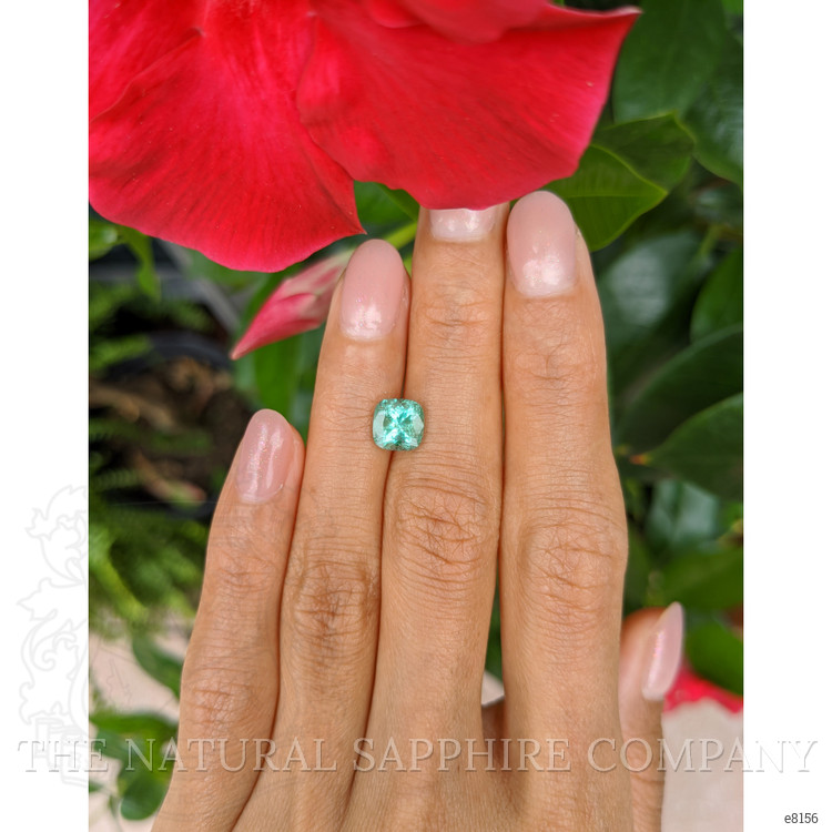 This gemstone's allure lies in its perfect fusion of nature's marvels and master craftsmanship. Our 1.38 carat cushion-shaped emerald is a testimony to the enchanting allure of Colombian treasures, revered across the globe for their rich heritage. With dimensions of 7.07 x 6.94 x 5.11 mm, this emerald is not just a stone but a herald of fine artistry, evoking emotions of splendor and grace with every gleam. The mixed brilliant cut unleashes a dance of light, casting a spell that captures the imagination and emboldens the spirit.