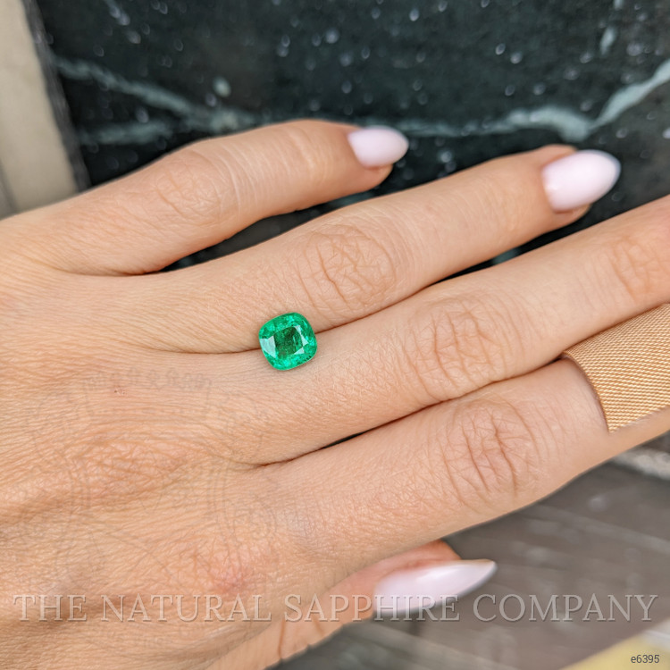 The Natural Emerald Company proudly introduces a magnificent gemstone that embodies the harmonious blend of beauty and authenticity: a transparent 1.48 carat cushion shape green emerald. This exceptional emerald, with dimensions of 7.07 x 6.97 x 4.57 mm, has been meticulously crafted through a mixed brilliant cut, resulting in a gemstone that dazzles with every glance. The intense color intensity of this emerald, reminiscent of the lush Zambian landscapes from which it originates, ensures that it stands out distinctly among other gems the market offers. Its rich hue is emblematic of the highest quality stones found in the world, making it an irresistible choice for those who value excellence.