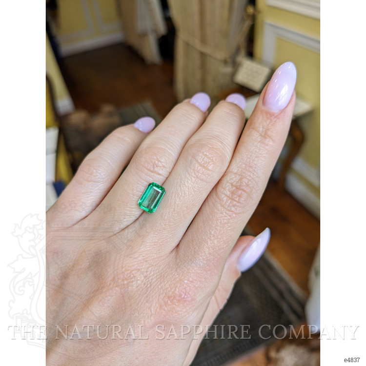 The rarity of such a substantial emerald cannot be overstated. Many emeralds under two carats may suffer from visible inclusions that interfere with their clarity and overall appearance. However, the emerald from The Natural Emerald Company boasts a clarity grade of very very slightly included, meaning it has negligible inclusions that are virtually invisible to the naked eye, ensuring that its captivating emerald cut takes center stage without distraction. This clarity places our emerald in an elite category where light can perform its magic, creating an illusion of depth and character that is rarer in its peers. The emerald's finely executed cut enhances its luster and offers a continuous shimmer, entreating connoisseurs to gaze longer, delve deeper, and appreciate more fully.