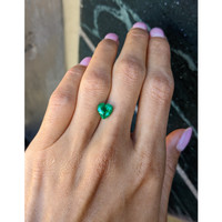 Introducing a truly mesmerizing gemstone from The Natural Emerald Company, a stunning 1.67 carat heart-shaped emerald that will captivate both the eye and the soul. This exceptional piece measures 8.00 x 7.77 x 4.93 mm and features a mixed brilliant cut, designed to maximize the stone’s brilliance and fire. With a clarity grade of very very slightly included, evaluated at eye level, this emerald displays minimal inclusions, enhancing its transparency and overall beauty. The vivid green color intensity of the emerald is truly distinctive, offering a rich and saturated hue that holds significant appeal for connoisseurs and collectors alike. Its excellent polish further ensures that the stone gleams with breathtaking luster, making it an exquisite choice for any fine jewelry piece.
