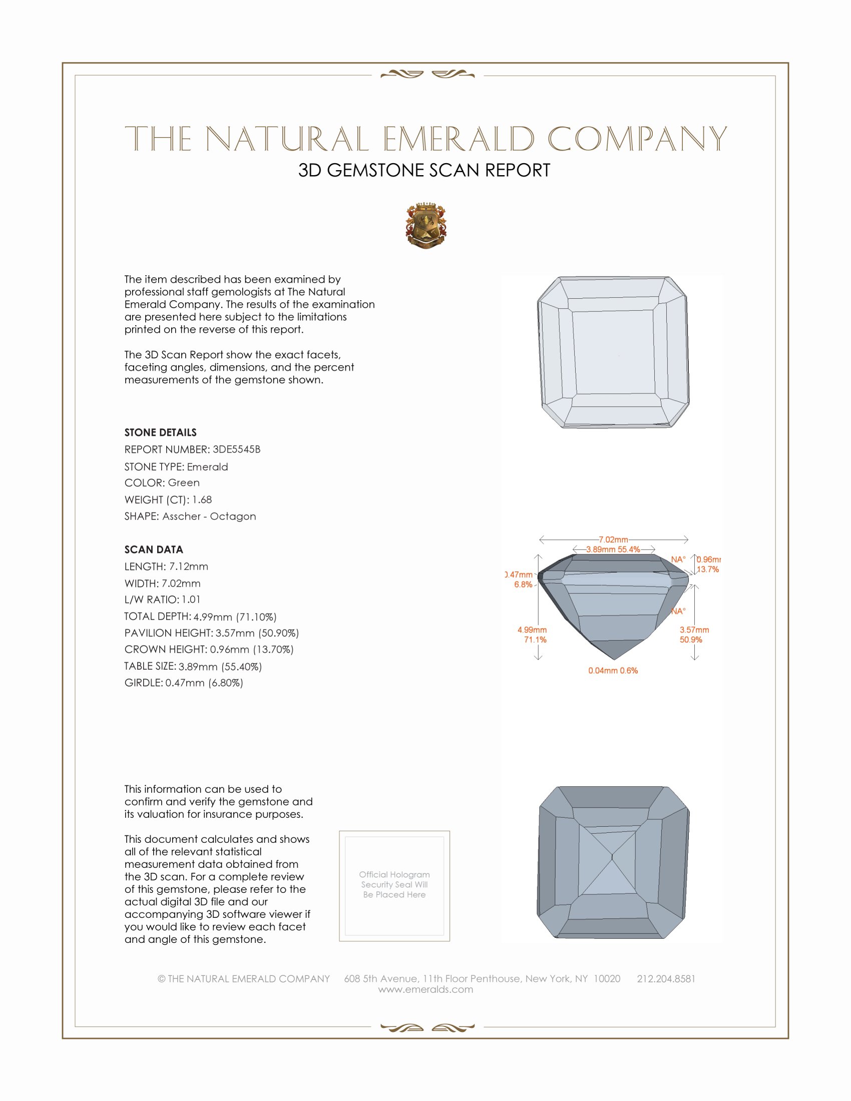 In essence, the 1.68-carat Asscher-cut emerald represents more than just a mere introduction to the enchantment embodiment of Colombian gemstones. It exemplifies a deftly balanced purity of form and complexity captured in color, making it not just an investment in luxury but a valuable testament to nature's prowess, skillfully presented by The Natural Emerald Company. Whether chosen for its prestigious origin or its exquisite capacity for personal expression, this emerald is bound to stand as an unparalleled piece in any jewelry collection, where it will undoubtedly remain a legacy for future generations to admire.