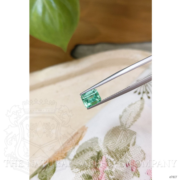 One beautiful transparent 1.70 carat emerald cut green emerald is offered by The Natural Emerald Company, with dimensions of 7.74 by 6.11 by 5.09 mm, a clarity grade of slightly included evaluated at eye level, medium light color intensity, and an excellent polish. This gem is completely natural, with no enhancement, and it comes from Russia. The emerald cut emphasizes the gem clarity and color, creating broad step facets that reflect light in a calm, architectural manner. The medium light intensity gives the stone a fresh and lively presence that reads as both elegant and modern, while the slightly included clarity provides natural character without compromising its transparent appeal. The excellent polish makes facet edges crisp and the table reflective, allowing this gem to display a clean, serene green that looks distinct from many other market specimens.