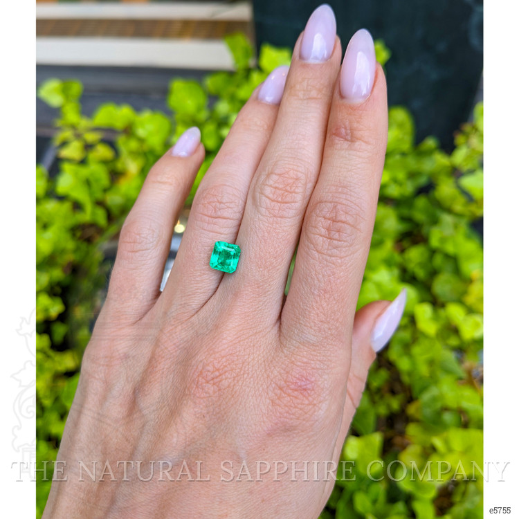 Our emerald, certified by C.Dunaigre, gleams with a brilliance worthy of legends. It has been lovingly shaped into an asscher-octagon form, a wonder both mesmerizing and unique. Its transparent body, 6.89 by 6.45 by 5.65 mm in dimension, stands as a monument to time's careful crafting. The asscher cut magnifies its radiance, each facet reflecting love artistically woven through epochs. Slight whispers of inclusions give it character, telling stories not visible to the naked eye but adding depth to its mystique. The medium intense green hue covers it like an emerald mist, poignant and balanced, capturing the essence of the forest landscapes captured as a fleeting summer dream.