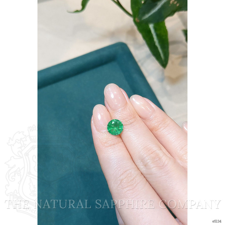 Discover the exquisite embodiment of nature's artistry with our 1.81 carat round shape green emerald, offered by The Natural Emerald Company. Originating from the richly abundant mines of Ethiopia, this gemstone stands as a paradigm of premium quality, showcasing dimensions of 8.57 x 8.59 x 5.16 mm. Its substantial carat weight marks it as a standout piece for connoisseurs and collectors alike, promising a distinguished addition to any fine jewelry collection. Renowned for their distinct allure, Ethiopian emeralds are treasured for their vivid green hues, and this gemstone is no exception. It boasts an intense color intensity that captures and reflects light with remarkable brilliance.