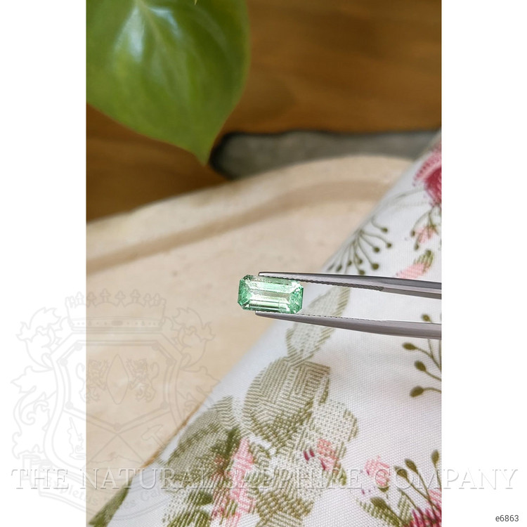As it journeys from its natural origin to the frontiers of craftsmanship, this gemstone retains the rugged charm of its birthplace, now meticulously refined to adorn a new life. The slight inclusions found within tell stories untold and mysteries unheard, each notch and nuance enhancing its narrative and intrinsic value. Touched by no human intervention or enhancement, this emerald from The Natural Emerald Company stands as a testament to nature's untouched wonders. Possessing a light color intensity and excellent polish, the gemstone's clarity captivates the soul, urging it to wander amidst dreams of ancient lands and mystical pasts. Its bluish-green hue whispering tales of rivers and forests, speaks to the authenticity and raw beauty found in unaltered stone.