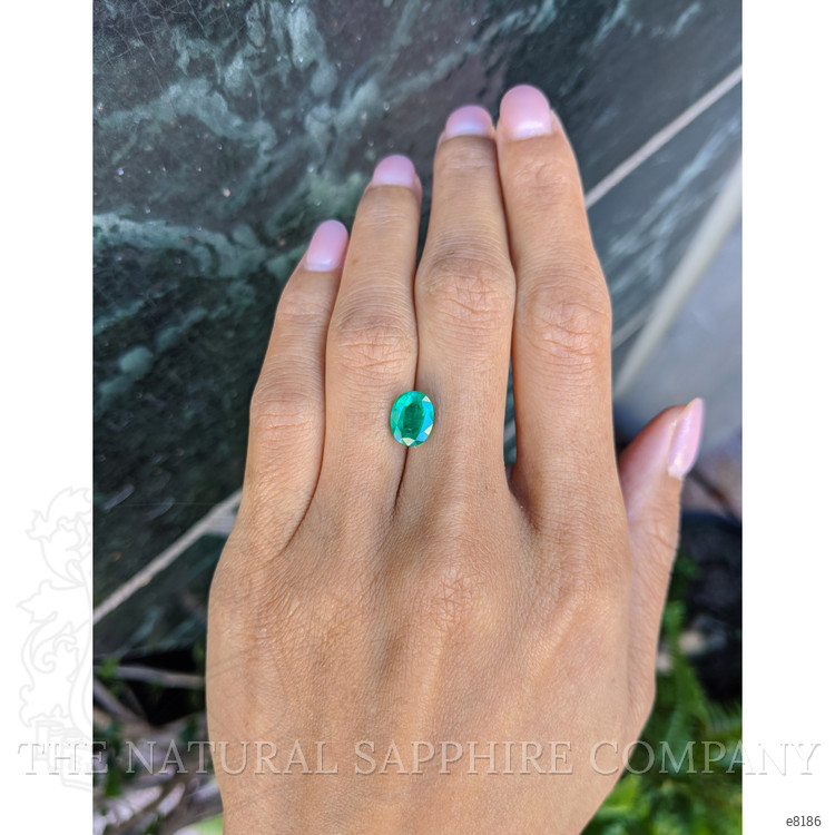 In the quiet whisper of Zambian soil, beneath the canopy of time's gentle embrace, emerges an emerald of resplendent beauty offered by The Natural Emerald Company. This enchanting gemstone, with its 1.95 carats of transparent wonder, captures the lush allure of verdant landscapes and promises to be a cherished token of affection. Measuring 9.07 by 7.13 by 4.83 millimeters, this oval-shaped marvel is a testament to nature's artistry, perfect for adorning the finger of someone extraordinary. Its mixed brilliant cut dances with the light, each facet reflecting a symphony of vivid green tones that sparkles like dew upon morning leaves.