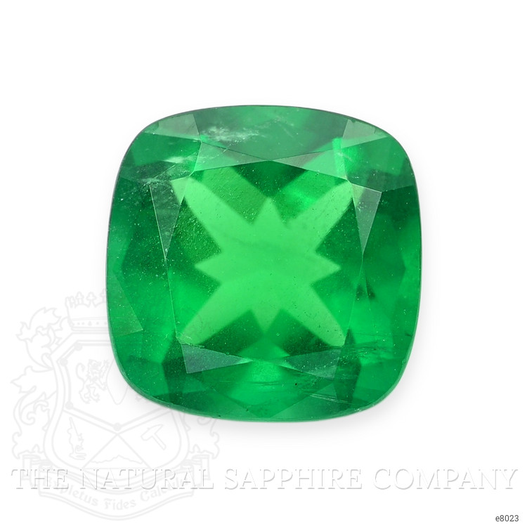 At The Natural Emerald Company, our gem transforms from its raw, natural state to a work of art that showcases the very essence of luxury and elegance. Unlike the cooler green shades of emeralds mined in Zambia or the lighter ones from Brazil, the Colombian emerald exhibits a vivid depth, reminiscent of a flourishing rainforest after a summer rain. Its 8.07 x 8.07 x 5.03 mm dimensions, meticulously crafted into a cushion shape, highlight its verdant vibrancy, akin to the rich green seen only in the finest Colombian specimens. The mixed brilliant cut illuminates its clarity grade of very slightly included, ensuring that the gemstone sparkles with an interpretive brilliance that captivates all who set eyes upon it.