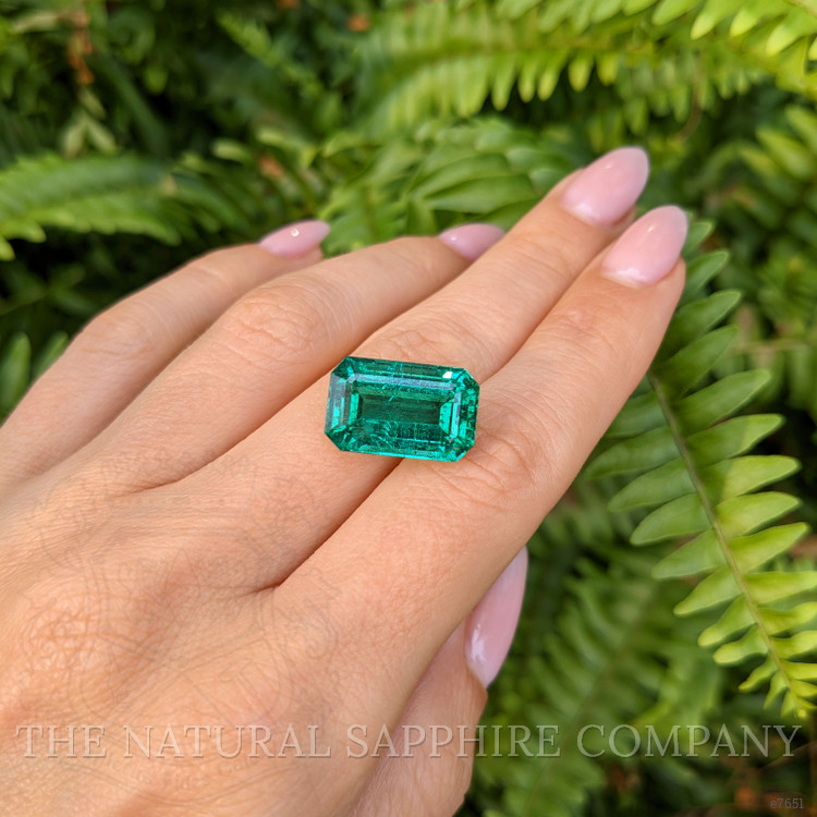 The intense color intensity of this Zambian emerald is nothing short of extraordinary, conjuring a vivid tableau of emerald waters kissed by the radiant sun at dawn. This gemstone's clarity grade, very slightly included, invites the owner to gaze into its depths, where whispers of its geological history are sealed within its crystalline form. The precision of the emerald cut enhances its innate elegance, transforming the torch of sunlight into a symphony of dance and glimmer that invites rather than shouts. Its dimensions, 16.33 x 10.38 x 8.18 mm, ensure that this emerald commands attention without overwhelming, resting as a testament to its unique allure.