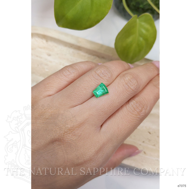 Introducing a truly exquisite piece from The Natural Emerald Company: a beautifully transparent 2.03 carat bluish green emerald. With dimensions of 8.72 x 7.60 x 5.64 mm, this gemstone presents a unique fancy shape designed to captivate the eye. The step cut enhances its natural allure while maximizing the play of light within the stone. Despite having an included clarity grade evaluated at eye level, this emerald’s beauty and character are undeniable and add to its charm as it reflects its natural origins. Boasting medium color intensity and an excellent polish, this gem sparkles with an irresistible vitality.