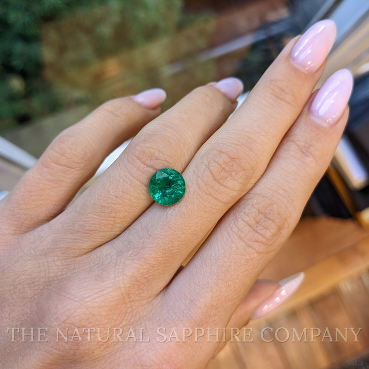 In the heart of an ancient land, where the sun-kissed savannah stretches into infinity and whispers of deep verdant dreams drift upon the breeze, there lies a gem born from the earth's embrace. Allow us to introduce you to a marvel of nature, a 2.11 carat round-shaped emerald, pure as the untouched leaves of a Zambian forest glen. Its dimensions, subtle yet graceful at 8.57 by 8.44 by 5.44 millimeters, make it a jewel of exquisite standing, ready to be cradled within a masterpiece of custom jewelry. The Natural Emerald Company takes pride in offering this celestial bounty to those with the courage to declare their deepest affections and the elegance to adorn themselves with nature's finest.