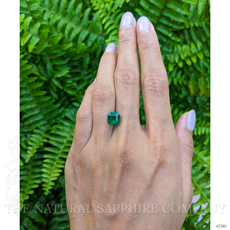 With dimensions that reveal its depth, standing at 7.59 by 7.32 by 5.55 mm, we behold the charm of an asscher-cut emerald, its octagonal symmetry urging us to delve deeper into its essence. The gem's color intensity is as vivid as the landscapes from whence it emerged, a reflection of the life-force enchanting the lands of its origin. It is in this potent green, akin to fresh rain-drenched foliage, that we find nature's signature, marked distinctively by the subtle inclusions carried within. These unique inclusions crisscross through the emerald like tiny natural sketches, gifting it with character, history, and an authenticity unmistakably its own.