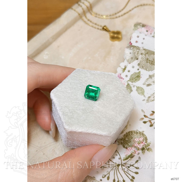 This particular emerald's intense color is a mesmerizing reminder of the lush landscapes from which it hails. Every facet of its octagonal shape is expertly cut and captured to deliver an optimal brilliance that does not fade with time but, instead, adds layers upon layers of memories and emotions every time light dances across it. Despite its slightly included clarity grade, viewers are graced with a visual experience that echoes the untouched beauty of its Colombian origins. These inclusions, perhaps akin to footprints of its journey through the heart of the Earth, enhance its authenticity and charm, setting it apart as a true masterpiece of nature's artistry. Its excellent polish provides a surface through which the unadulterated essence of green captures the gaze and imagination, tying together the elegance that only The Natural Emerald Company can provide.
