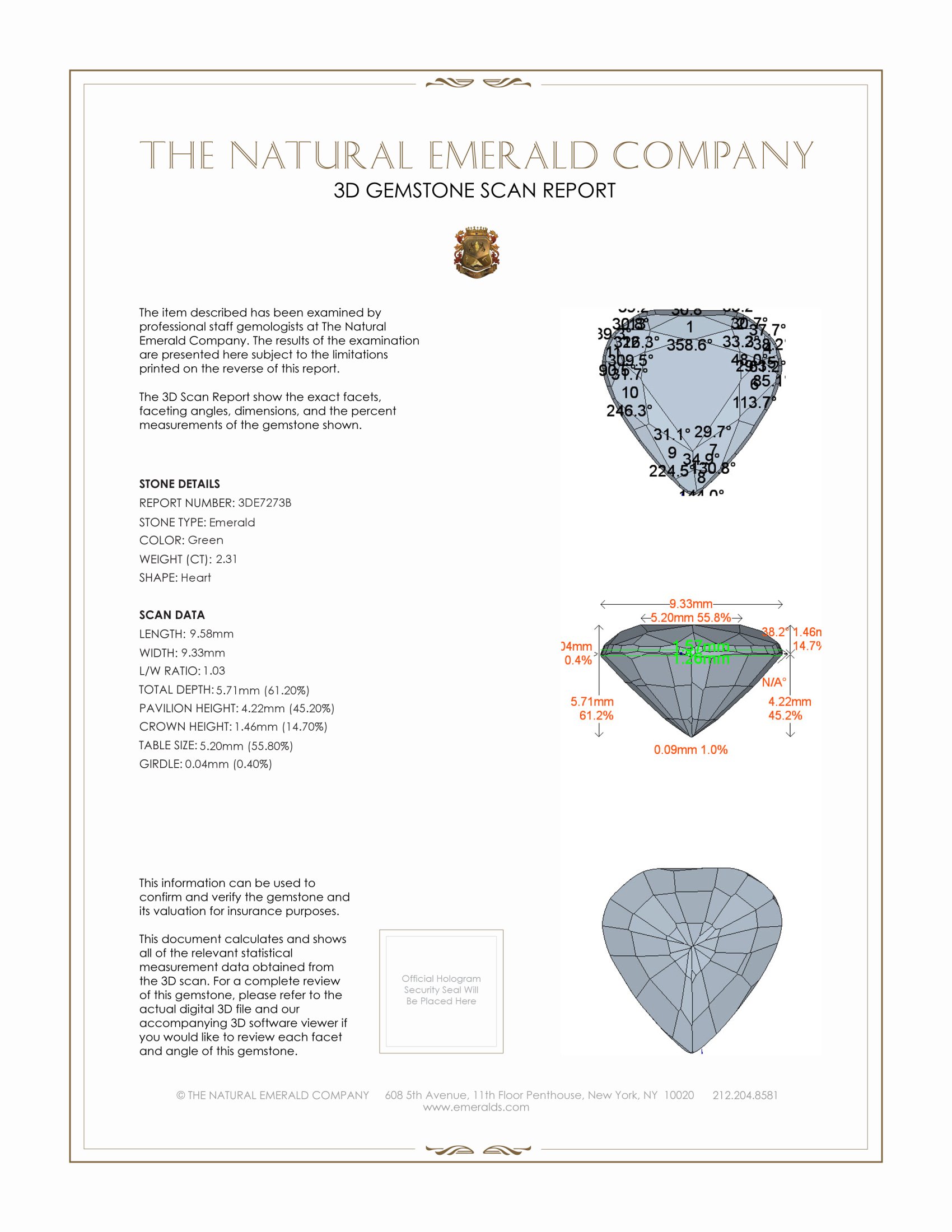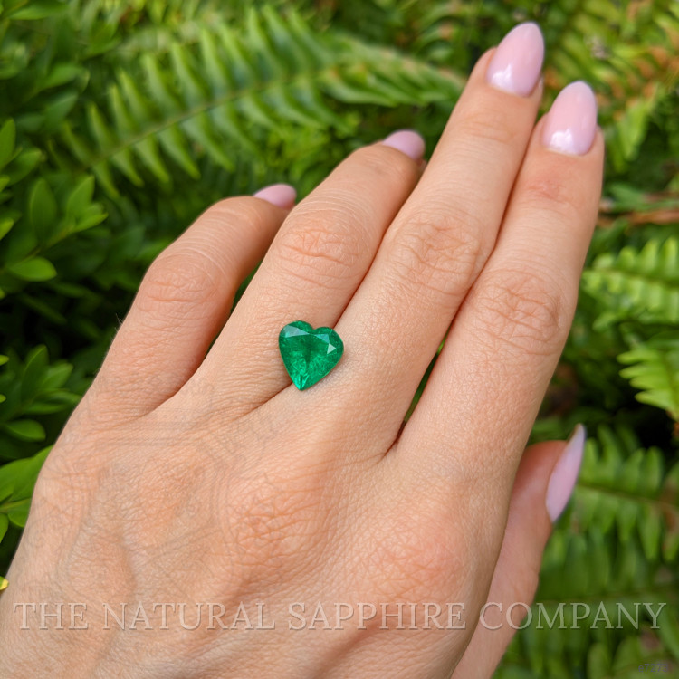 Embodying the sheer embodiment of elegance, this particular green emerald is a heart-shaped wonder weighing in at 2.31 carats. Its luminous dimensions, measuring 9.58 by 9.33 by 5.71 mm, are the epitome of precise craftsmanship ensuring a picturesque silhouette that captures the imagination. With a mixed brilliant cut, each facet is meticulously carved, promising a gleaming play of prismatic light that dances with every subtle movement. The gem's very slightly included clarity allows it an authentic character, a quiet reminder of its natural origins, while its vivid color intensity ensnares the senses with a hue so scandalously rich, it seems almost otherworldly. Complemented by an excellent polish, the surface becomes a seamless skin, mirroring one's surroundings in its gentle sheen, and enhancing the allure of the tranquil green it so prominently displays.