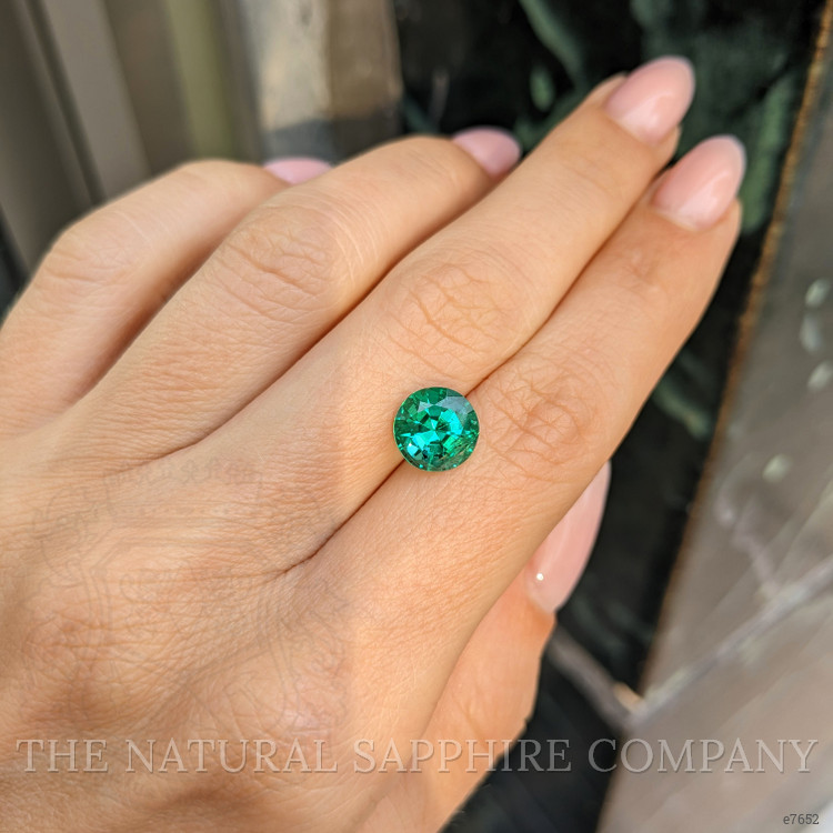 The Natural Emerald Company is proud to present a remarkable transparent emerald that exemplifies the artistry and precision of fine gemstone craftsmanship. This exquisite 2.34 carat green emerald, originating from the renowned Zambian mines, showcases a vivid color intensity that is highly sought after by connoisseurs of fine gemstones. With precise dimensions of 8.66 x 8.47 x 6.28 mm, this emerald is meticulously cut into a round shape using a mixed brilliant cut technique. This method combines both step cuts and brilliant cuts to maximize the gemstone's scintillation and brilliance, offering a mesmerizing play of light. The attention to detail in its faceting style ensures that each angle captures and reflects light to create an alluring sparkle, enhancing the stone's natural beauty.