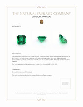 The Natural Emerald Company proudly presents this emerald with an Asscher cut, showcasing its remarkable color and clarity. The very very slightly included grade, evaluated at eye level, highlights the stone's pristine and virtually flawless characteristics. Its excellent polish enhances the gem's brilliance, ensuring that every glance reveals a mesmerizing play of light and color. This emerald's unmatched size and hue make it not just a choice, but the ultimate choice for those seeking rarity and excellence in gemstones.