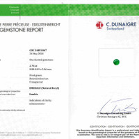 The gemstone in question is a certified masterpiece from C.Dunaigre, offering an exemplary connection between nature's beauty and artisanal precision. This 2.74-carat green emerald stands as a testament to the unyielding commitment of The Natural Emerald Company to providing gemstones of unparalleled quality and brilliance. With dimensions measuring 8.90 by 8.88 by 5.87 millimeters, this round-shaped emerald commands attention with its substantial presence, which is further amplified by its mixed brilliant cut. The facets are meticulously arranged to maximize the internal reflections, creating a scintillating play of light that enlivens the stone's inherent vibrancy.