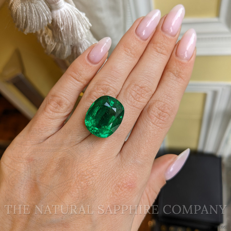 The Natural Emerald Company proudly presents a truly exceptional gemstone, a transparent C.Dunaigre certified 21.78 carat green emerald, exquisitely designed for custom jewelry. This striking emerald is expertly shaped in a cushion form and is distinguished by its impressive dimensions of 19.06 x 15.85 x 11.32 mm. The meticulous craftsmanship is evident in its mixed brilliant cut, enhancing its brilliant play of light and color. This characteristic makes it an ideal centerpiece for custom jewelry projects, capturing attention with its vivid color intensity and flawless polish.