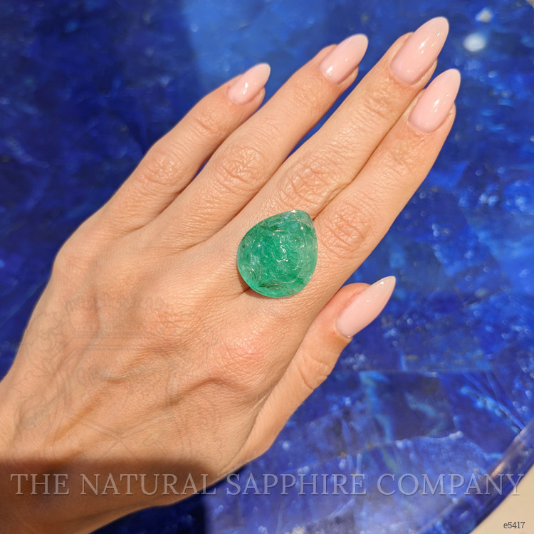 Unearthed with reverence for its natural allure, this semi-translucent emerald embarked on a journey just as enchanting as its origins. Cut into a delicate pear shape, its dimensions of 22.57 x 19.05 x 10.10 mm echo the elegant curves of a lover’s embrace, promising enchantment from every angle. The carving cut enhances its form, allowing each glistening facet to tell a story as old as time itself, while the excellent polish whispers secrets of a world long forgotten. Graded as very slightly included, its clarity sparkles like morning dew upon a field at sunrise, capturing the light in flashes of vivid green and casting a spell to anyone fortunate enough to gaze into its depths. Its intense color, like that of an emerald sea, holds memories of rain-kissed lands and the vibrant spirit of the Russian heartland.