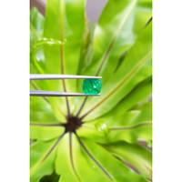 This 3.00 carat cushion shape green emerald measures 10.27 x 9.55 x 4.45 mm, and presents as semi translucent with a classic sugar loaf cut that emphasizes tone and depth rather than faceted brilliance. The stone displays intense color intensity, and an excellent polish that provides a smooth reflective surface and enhances the stone uniformity when set. Clarity is graded slightly included, evaluated at eye level, a condition that is consistent with natural emerald formation and that contributes to the stone character and individuality. Enhancement is standard, and the material is responsibly sourced from Pakistan, a region known for producing vivid and characterful emeralds. The combination of size, shape, and cut yields a substantial visual presence while retaining wearable proportions, making this piece suitable for a variety of settings where a strong green focal point is desired.