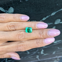 The remarkable size of this emerald sets it apart as a truly exceptional gem, promising to command admiration and awe. Measuring 9.61 x 7.67 x 5.82 mm, the substantial form of this piece offers the perfect canvas for the vibrant play of its deep green hues. Its intensity of color not only signifies the richness and depth of a genuine Zambian emerald but also serves as a testimony to nature's artistry. Clarity, being a critical factor, adds to its charm with a grade of very slightly included, meaning the inclusions are invisible to the untrained eye, breathing authenticity into the gem while ensuring that its natural splendor shines unobstructed.