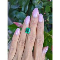 The emerald cut further elevates its allure, enhancing the stone's clarity and ensuring that every facet catches and reflects light in the most captivating manner. Such a cut has been cherished throughout history for its timeless appeal; chosen by connoisseurs and collectors alike who appreciate understated sophistication. Paired with excellent polish, the finish on this emerald is immaculate, rendering it smooth to the touch and exquisite to behold. Designed to be a standout feature in any piece of jewelry, this emerald is perfect for those special occasions that call for something truly unforgettable.