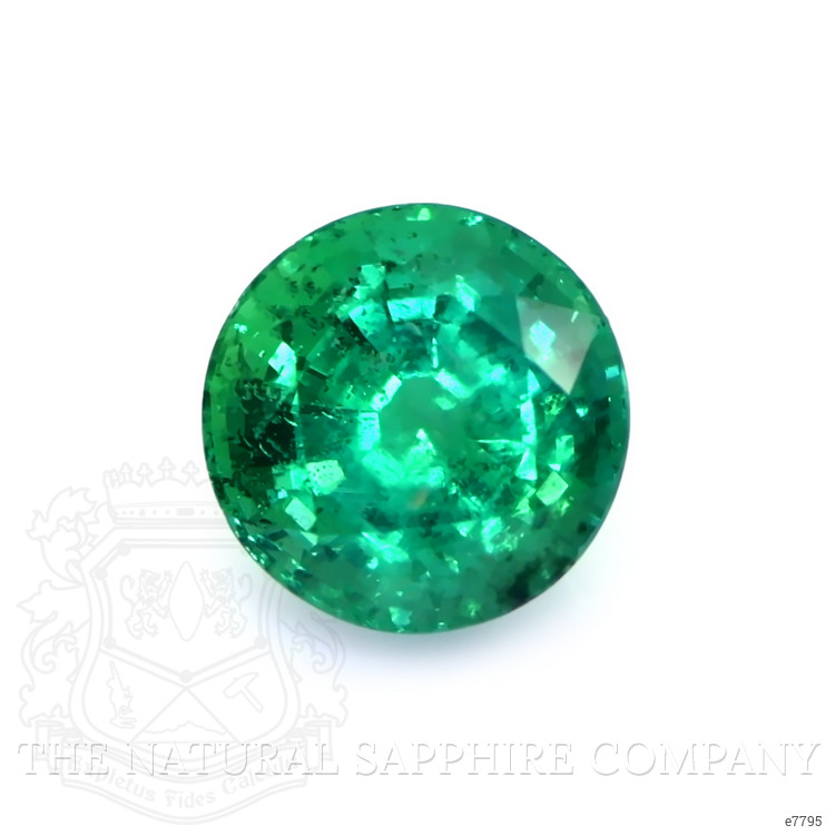 At The Natural Emerald Company, we take pride in offering exquisite gemstones that stand out for their quality and sophistication. Among our exclusive collection is a spectacular 3.18 carat round-shaped green emerald, boasting dimensions of 8.52 x 8.52 x 7.47 mm. Originating from Zambia, renowned for producing some of the finest emeralds in the world, this gem radiates a vivid color intensity paired with an excellent polish. It features a mixed brilliant cut that maximizes its natural sparkle and a clarity grade of very slightly included, assessed at eye level, ensuring that its minor inclusions do not detract from its overall allure. Its transparency is a testament to its exceptional quality, making it a top-tier choice for gemstone enthusiasts and collectors alike.