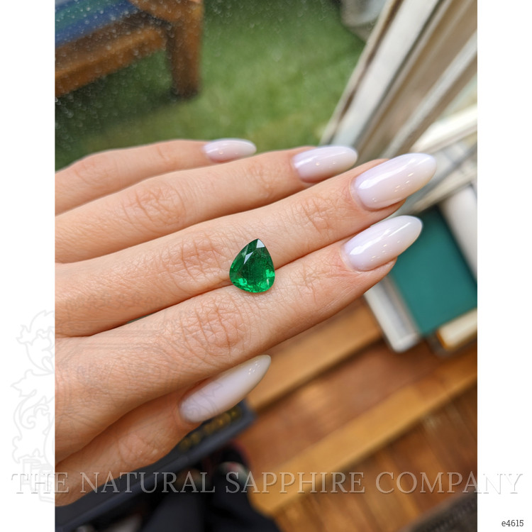 Deep within the fertile geological landscapes of Zambia, a miraculous process unfolded millions of years ago, giving birth to a most captivating gemstone. This exquisite emerald, weighing 3.19 carats, owes its existence to a fascinating symbiosis of elemental forces and geological time. Formed during a geological epoch when tectonic plates shifted, intense pressures and temperatures facilitated the fusion of beryllium with chromium and vanadium. These conditions were essential for the emergence of an emerald with such vivid color intensity, achieved through trace elements that imbue it with its characteristic green hue. The unique pear shape of this gem was meticulously sculpted through a mixed brilliant cut, an intricate technique that enhances its inherent brilliance by maximizing the interplay of light across its surface.