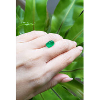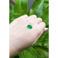 From the highland veins of Pakistan to the careful hands of our master cutters, this emerald has traveled a story of earth and craft that you can feel when you hold it. Unearthed in a place where geology yields intense green, the rough was selected for its depth of color and structural integrity. At 3.41 carat this cushion shape emerald announces itself with a weight and presence that immediately speaks of rarity and premium quality, a substantial size for a single stone that translates into lasting value. The cutter chose a cabochon form to honor the gem's natural translucence and to maximize its vibrant hue, resulting in dimensions of 10.77 x 7.38 x 6.04 mm that sit comfortably on the hand while offering a noticeable profile. Evaluated at eye level as slightly included, the clarity is honest and typical for fine emeralds, and with standard enhancement disclosed, the stone retains its authenticity. The intense color intensity and excellent polish are the result of deliberate choices made to preserve the gem rather than to mask it, allowing light to glide across the surface and reveal the inner landscape that makes each emerald unique.