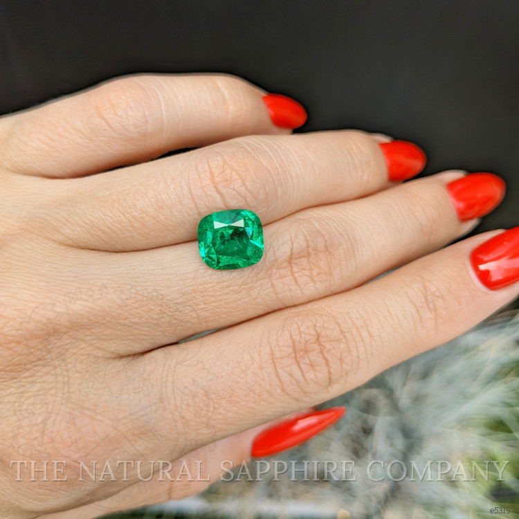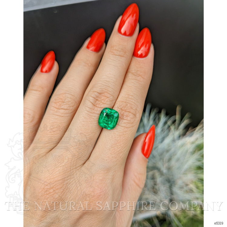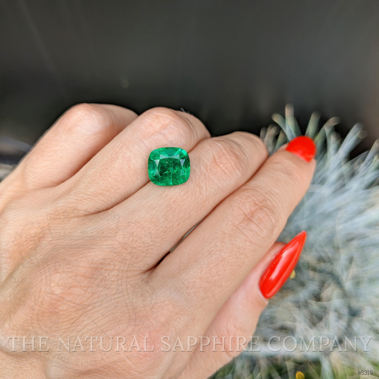The elegance of its cushion shape, finely measured at 9.91 by 9.16 by 6.32 mm, calls to mind soft whisperings of love and promises sealed beneath star-lit skies. With each reflection of light through its mixed brilliant cut, the emerald enchants and ignites a spectrum of unforgettable memories. Bathed in an intense, vivid color, it seems to capture every shard of verdant beauty kissed by the dawn, making it a timeless token of commitment and devotion.
