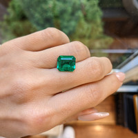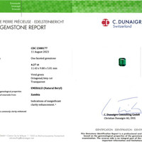 In the enchanted realm of precious stones, where nature's grandeur is crystallized for eternity, a singular masterpiece emerges: a captivating 4.27-carat emerald, certified by C.Dunaigre, that radiates with an ethereal glow akin to the aurora borealis. This emerald, crafted in the elegant emerald cut, presents itself as an unassailable testament to time's passage, as its dimensions of 11.42 x 9.78 x 5.82 mm embrace perfection with grace. Adorned with a vivid color intensity that evokes the vibrant tapestry of Zambian landscapes, this gemstone becomes more than mere ornamentation; it is the muse of poets, a repository of dreams and whisperings of eternity. The diamond's clarity, very slightly included, mirrors the tender imperfections that enhance beauty rather than diminish it, while its excellent polish unveils a mirror to the soul's deepest longings.
