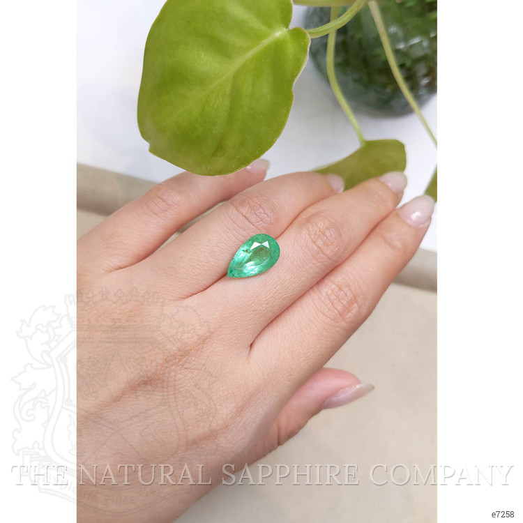 The emphasis on cut and brilliance positions this emerald as an ideal addition to sophisticated jewelry pieces. Whether set in a pendant, ring, or another sophisticated setting, it promises to elevate aesthetic appeal. This stone is not just an investment in beauty. It is an investment in a treasured legacy that transcends time. At The Natural Emerald Company, we take pride in offering gems that are as enduring as they are exquisite. This pear-shaped emerald exemplifies the type of jewel that can be admired not just for its immediate beauty but for generations to come.