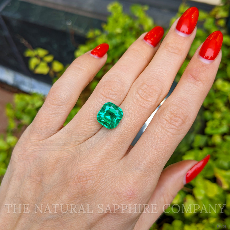 The centerpiece of any bespoke jewelry creation, the breathtaking 5.20 carat green emerald offered by The Natural Emerald Company is nothing short of mesmerizing. Crafted with the finest attention to detail, this cushion-shaped gemstone is certified by the American Gemological Laboratories (AGL), carrying their endorsement of quality and authenticity. Featuring dimensions of 10.58 x 9.99 x 7.85 mm, this emerald commands attention through its substantial size and weight, embodying luxury and sophistication in equal measure. The mixed brilliant cut enhances its natural allure, presenting a scintillating display of light and color that captivates from every angle.