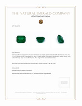 One beautiful transparent 5.27 carat emerald cut shape green emerald with dimensions of 11.27 x 9.11 x 6.98 mm. It has a emerald cut, and a clarity grade of included (evaluated at eye level), vivid color intensity, and an excellent polish. The origin of this emerald is Zambia.
