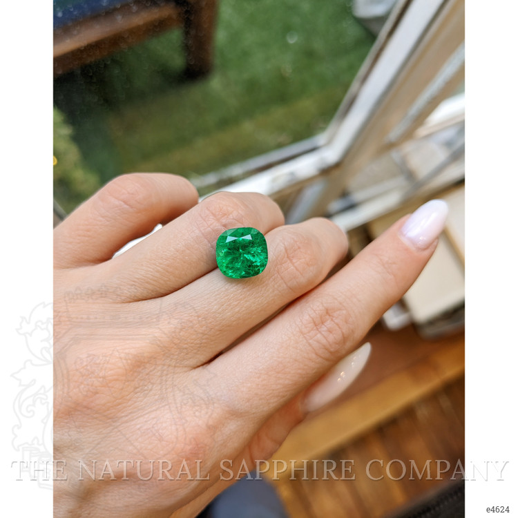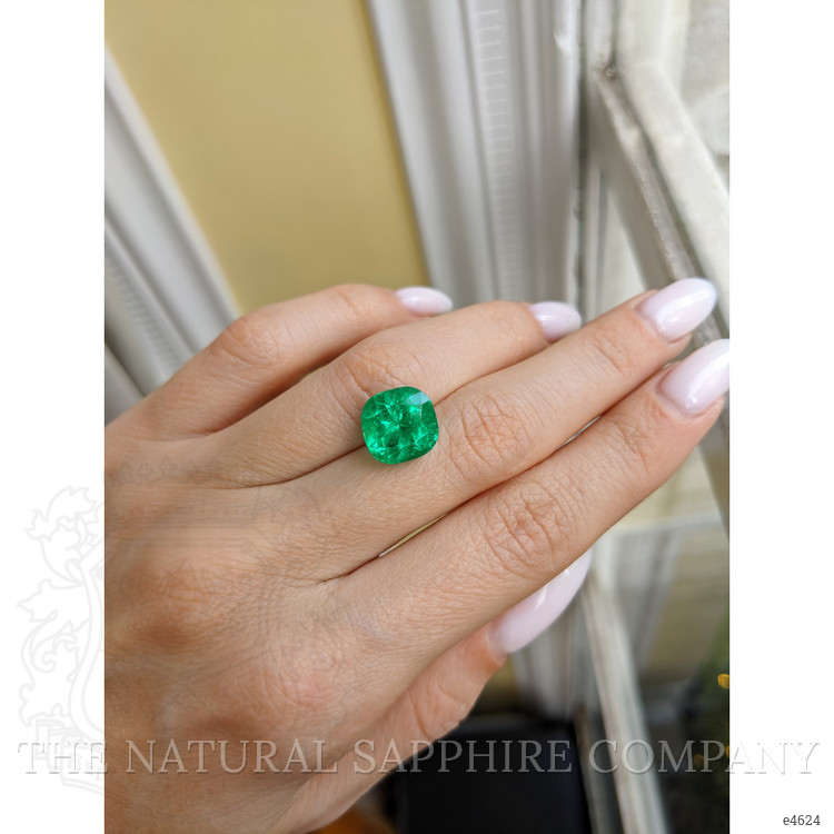 Introducing an extraordinary marvel in the world of fine gemstones, The Natural Emerald Company presents a transparent GIA certified 5.56 carat cushion-shaped green emerald, a gem that epitomizes elegance and sophistication. This rare piece serves as a testament to the enigmatic beauty that can only be found in the depths of the earth, showcasing the extraordinary artistry and commitment to quality that our company is renowned for. With dimensions of 10.62 x 10.46 x 8.43 mm, this emerald stands as a true masterpiece, each facet brilliantly reflecting light in a dance of unrivaled color and splendor.