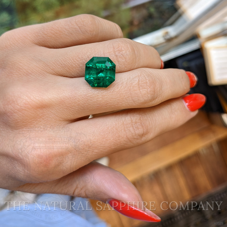 Crafted into a stunning asscher-octagon shape, this emerald's dimensions of 11.58 x 11.51 x 8.60 mm enhance its vibrant presence. The asscher cut, revered for its ability to highlight the emerald's clarity and brilliance, endows this jewel with an unparalleled luster and depth. Our artisans' craftsmanship ensures the excellent polish that accentuates this vivid piece's mesmerizing greenery. A clarity grade of very slightly included means that to the naked eye, any imperfections are slight and lend authenticity without diminishing its beauty. Set into any piece of jewelry, its striking color intensity will undoubtedly command attention, turning heads whether in a minimalist setting or a more elaborate design.