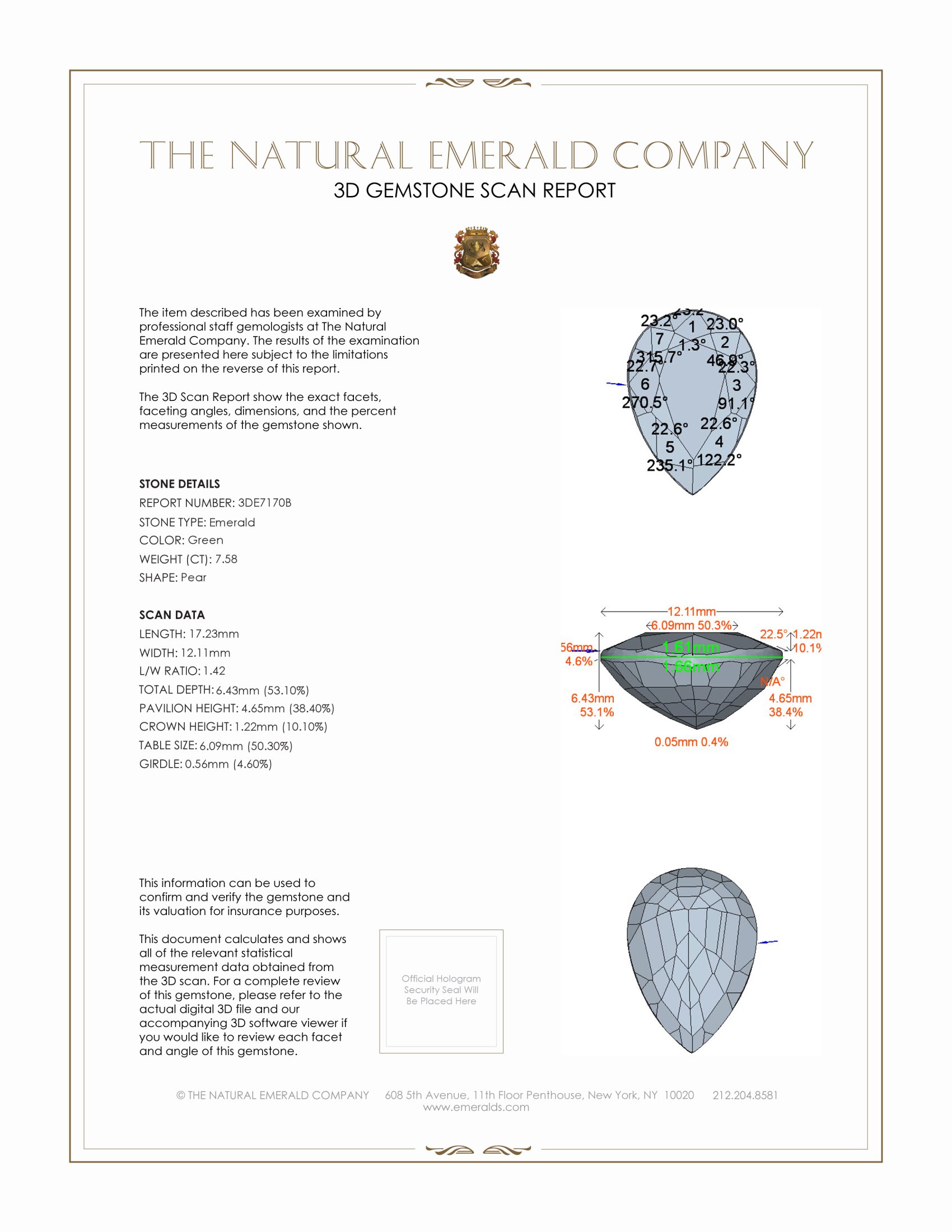 Choosing an emerald from The Natural Emerald Company is about valuing legacy and supreme quality over fleeting trends. While there are plenty of gems available today, few can offer the assurance of both authenticity and aesthetic brilliance wrapped in a single package. This pear-shaped emerald is more than a purchase. It is an investment in enduring beauty and craftsmanship that will be cherished for generations to come. Make an informed choice by selecting our gemstone, secure in the knowledge that you are acquiring a treasure with unmatched advantages in quality, value, and uniqueness. Let the emerald from The Natural Emerald Company be the crown jewel for anyone not just seeking beauty but seeking the best.