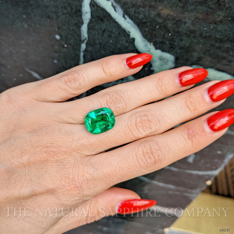 Possessing an impressive 8.18 carat weight, this emerald is a marvel of nature. Its transparent cushion shape, along with dimensions of 14.41 x 11.59 x 7.68 mm, ensures that it stands out as a statement piece. The mixed brilliant cut enhances its natural luster, emphasizing the depth and intensity of its vivid color. This emerald has a clarity grade of very slightly included, with any inclusions evaluated at eye level and blending seamlessly into its character. Every facet is polished to perfection, elevating this gemstone to a level of unparalleled beauty. Originating from Zambia, renowned for producing some of the world's most exquisite emeralds, this gemstone captures the essence of its source while embodying the highest standards of craftsmanship.