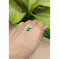 Measured with the surety of a jeweler and described with the tenderness of a poet, each stone weighs 0.31 carats, and together they form a perfectly calibrated whisper of weight and light. Their dimensions read like a map of symmetry, 6.01 x 3.01 x 2.35 mm for one, and 6.10 x 3.01 x 2.41 mm for the other, each carved into a refined fancy shape and given the clarity of a step cut that echoes artful geometry. Evaluated at eye level they carry a clarity grade of very slightly included, which to the connoisseur is a sign of authenticity and natural character, a fingerprint of the earth rather than a flaw. Their color intensity is intense, a living green that does not shout, but converses, drawing the gaze inward, and their polish is excellent, a finished surface that sings with every turn. Enhancement is standard, a common and accepted step in bringing emeralds to their luminous best, and their origin is Zambia, a place where deep green is born of geology and time.