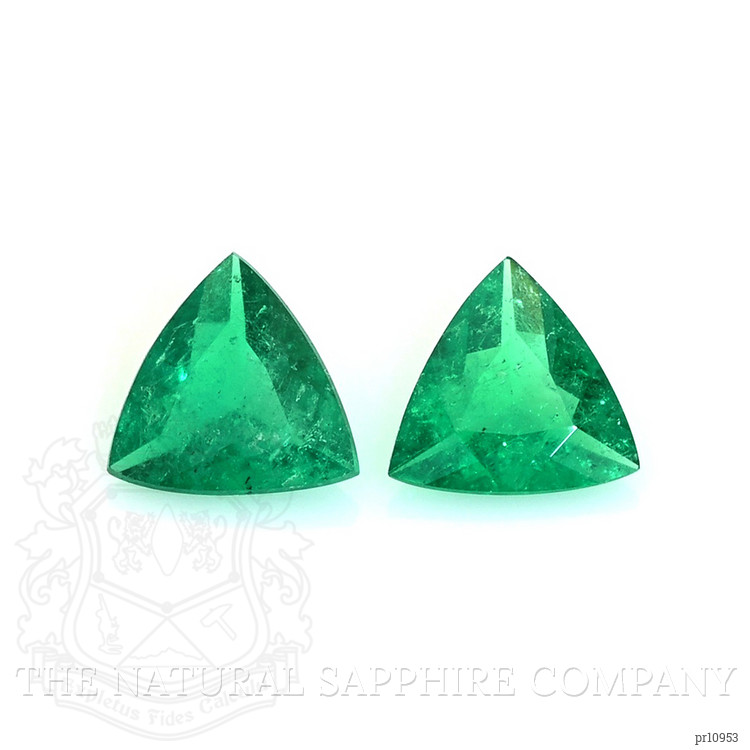 Immerse yourself in the enchanting allure of luxury with our exquisite pair of Colombian emeralds, offered by The Natural Emerald Company. Each piece is a testament to unparalleled craftsmanship and an embodiment of refined elegance, setting a new standard for sophistication. The painstaking process of selecting these matching gems ensures the perfect marriage of symmetry and brilliance, making them a true object of desire. Our artisans have expertly crafted these emeralds into a trillion shape, allowing the vivid green color to capture light and dazzle the eye with spectacular intensity.
