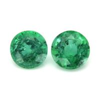 This exquisite pair of emeralds boasts a stunning transparency and a combined carat weight of 0.94 carats, with individual weights of 0.46 and 0.48 carats. Each emerald is fashioned in a round shape, exhibiting dimensions of 5.10 x 5.11 x 3.32 mm and 5.00 x 5.04 x 3.47 mm, respectively. These gemstones feature a mixed brilliant cut, enhancing their inherent brilliance and making them ideal for use in elegant earrings. The emeralds possess a clarity grade of slightly included, evaluated at eye level, which allows for an appreciation of their intense color. The vibrant green hue is accentuated by their excellent polish. Originating from Zambia, this pair exemplifies high-quality craftsmanship and natural beauty, presenting a harmonious match ideal for any refined jewelry collection.