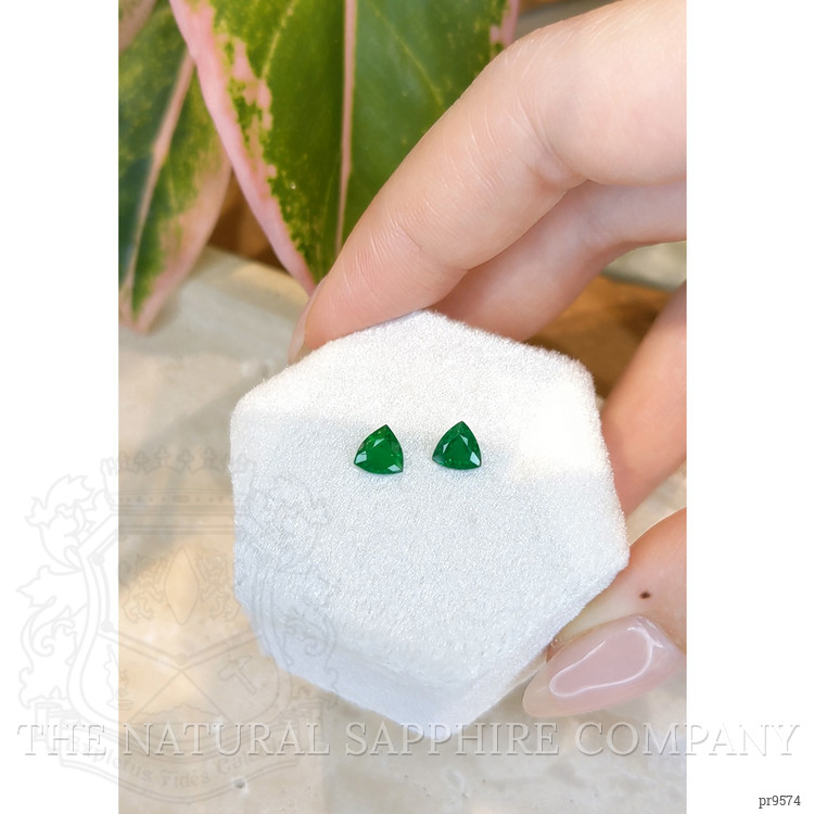 Discover a rare gem addition with our exquisite pair of trillion-shaped emeralds from The Natural Emerald Company. Unlike many common options flooding the market, this exceptional pair, originating from the revered mines of Zambia, stands apart due to its harmonious combination of unique characteristics and impeccable craftsmanship. The emeralds weigh 0.51 carats and 0.57 carats respectively, making them a noticeable presence that captivates the eye. With dimensions precisely measured at 5.69 x 5.73 x 3.08 mm and 5.82 x 5.85 x 3.19 mm, these stones boast an unparalleled symmetry that is often elusive in the world of gemstones, especially in pairs. Emerald connoisseurs will recognize the significance of such a perfect match, given its rarity in the market.