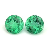 Each emerald in this remarkable duo is crafted in a round shape, dimensions being 5.74 x 5.73 x 3.57 mm and 5.71 x 5.71 x 3.68 mm, showcasing a mixed brilliant cut that enhances their natural splendor. The intense color intensity of these gems speaks to the rich, verdant hues emblematic of Zambian origins, a testament to the geological wonders from which they are derived. Comparatively, other non-matching gemstones may lack this naturally vivid saturation, often toned with secondary hues that detract from the true essence of a classic emerald.