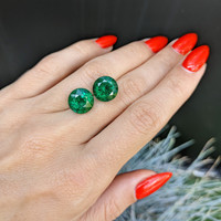 These beautiful emeralds, with weights of 5.22 carats and 5.80 carats respectively, represent the pinnacle of fine gemstone craftsmanship and quality. Their striking dimensions at 10.74 x 10.65 x 8.27 mm and 10.86 x 10.79 x 8.68 mm, coupled with their mixed brilliant cut, highlight the precision and care taken in shaping these gems. Their exceptional polish, vivid color intensity, and very slightly included clarity grade—which has been meticulously evaluated at eye level—serve to enhance the natural splendor of these precious stones. Sourced from Zambia, these emeralds reflect the finest mining traditions of this renowned region, celebrated worldwide for producing stones of outstanding clarity and vibrant color. The transparency of these emeralds allows for a gleaming reflection of light, ensuring they capture and hold the attention of any discerning eye. With a rich heritage in gemstone mining and a reputation for excellence, you can trust in the authenticity and superior quality of these emeralds. Ideal for incorporation into a bespoke piece of jewelry or as an enviable addition to any distinguished gemstone collection, these emeralds offer unparalleled beauty and timeless elegance. Investing in these gemstones means possessing not only a tangible asset but also a piece of earth's natural artistry.
