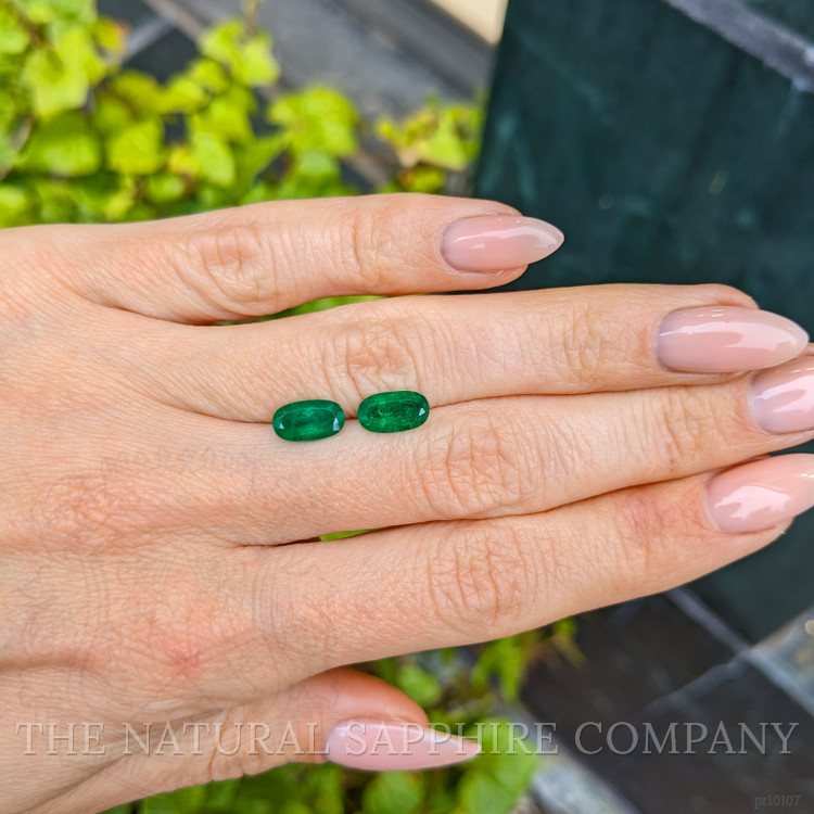 Introducing a stunning pair of oval-shaped green emeralds from The Natural Emerald Company, where craftsmanship meets unparalleled quality. Sourced from the renowned mines of Colombia, these emeralds weigh 1.09 carats and 0.99 carats, with dimensions of 8.84 x 5.07 x 3.87 mm and 8.95 x 5.10 x 3.51 mm respectively. What sets these gemstones apart from the myriad options on the market is their exquisite mixed brilliant cut, designed to maximize light reflection and create a mesmerizing sparkle that captivates the eye. Many alternatives may offer similar carat weights and dimensions, but few can boast the level of skill and artfulness embodied in our exceptional cutting techniques. The slightly included clarity, when viewed at eye level, ensures a natural and authentic allure, setting these gemstones apart with their vivid color intensity—a hallmark of premium emeralds.