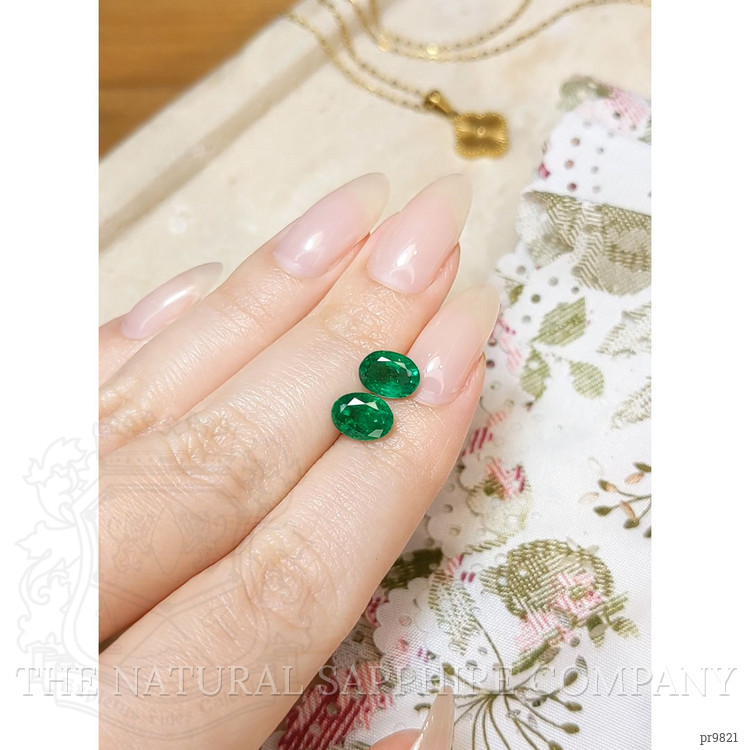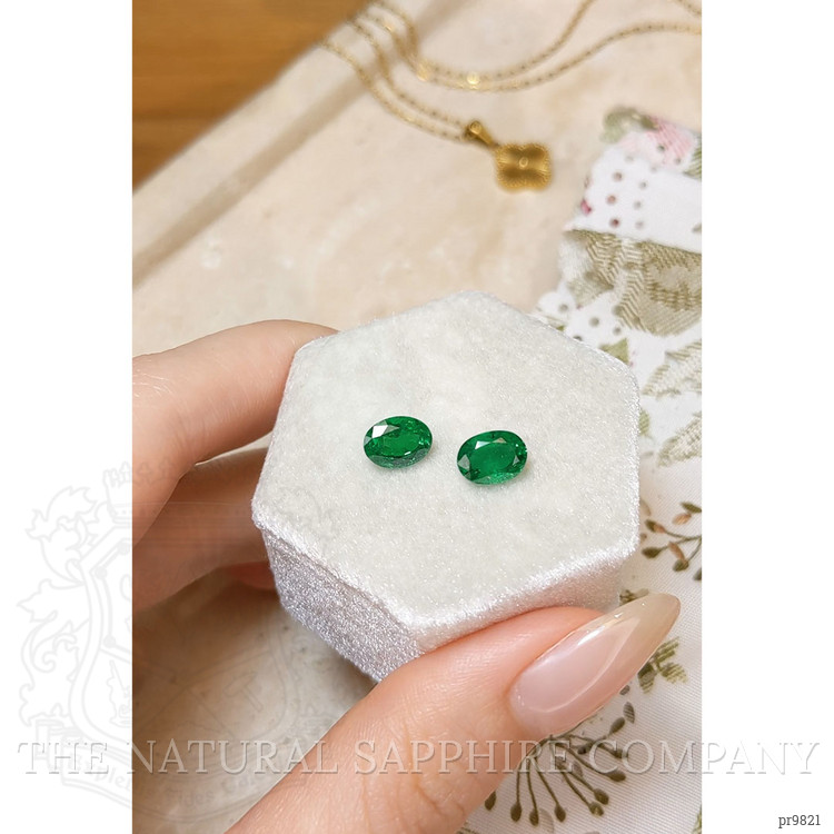 Introducing a pair of exquisite emeralds designed to captivate the essence of luxury and elegance. Offered by The Natural Emerald Company, these emeralds are perfect for use in high-fashion statement earrings, providing a touch of distinguished brilliance to any design. The stones weigh 1.29 carats and 1.31 carats, ensuring a balanced and striking presence when set in jewelry. Each emerald has been meticulously cut into an oval shape, with dimensions of 8.09 x 5.97 x 4.03 mm and 8.10 x 6.11 x 4.59 mm respectively. The mixed brilliant cut enhances their natural sparkle, making them an ideal choice for sophisticated gemstone jewelry.