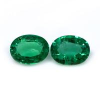 The beautiful, transparent pair of emeralds are 1.63 carats and 1.46 carats respectively. They are oval shape green emeralds, with the dimensions of 9.04 x 6.91 x 4.07 mm and 9.07 x 6.96 x 3.92 mm and are mixed brilliant cut, have a clarity grade of very slightly included (evaluated at eye level), medium color intensity, and an excellent polish. The origin of this pair of emeralds is Zambia.