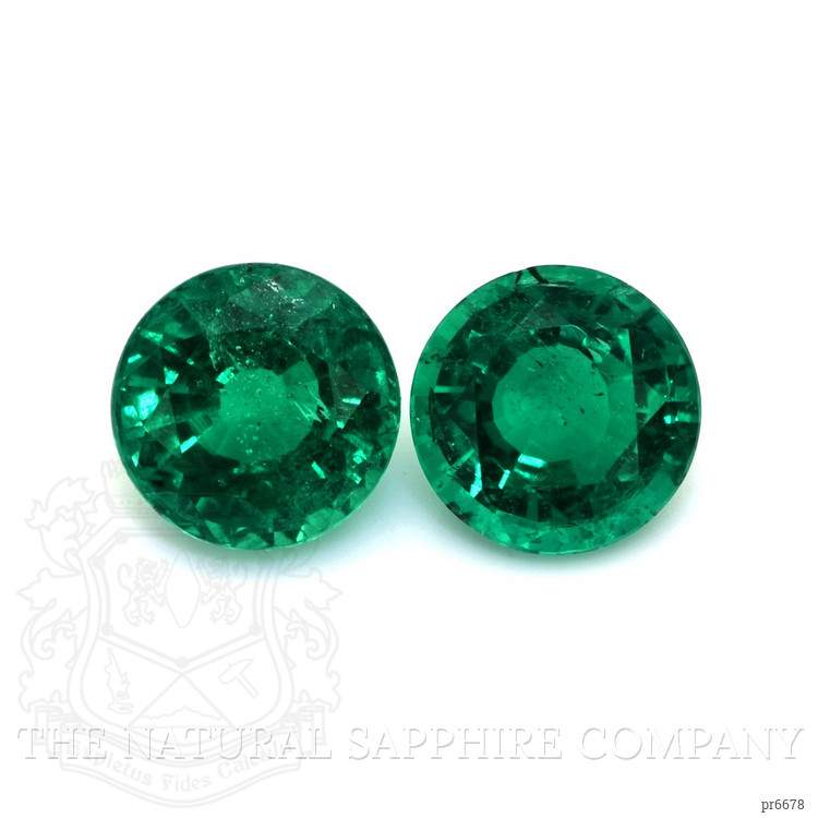 This exquisite pair of Zambian emeralds brings a story as rich as their color. These emeralds began their journey deep within the earth's crust, forming over millions of years. Their vibrant green hue, a hallmark of Zambian origin, reflects the lush landscapes of the region. Cut into perfect round shapes with a mixed brilliant cut, they have been fashioned to enhance their natural beauty and brilliance. The clarity of these emeralds, graded as very slightly included, ensures that their remarkable vivid color shines through with radiance. Untouched by any enhancements, these gemstones are a testament to the natural splendor that our earth can produce. Displaying excellent polish, they sparkle and gleam, ready to adorn a new piece of jewelry and become a cherished heirloom.