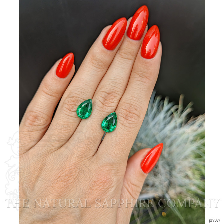 Elevate your jewelry collection with our exquisite pair of transparent emeralds, each weighing an impressive 3.04 carats. These pear-shaped treasures are meticulously crafted to capture the heart with their stunning dimensions of 11.54 x 7.73 x 5.81 mm and 11.62 x 7.68 x 5.79 mm. Expertly cut in a brilliant mixed style, they boast a clarity grade of eye clean, ensuring a flawless visual experience. The intense color intensity of these emeralds radiates sophistication and elegance, making them the perfect centerpiece for any fine jewelry piece. With an excellent polish, every facet shines with unmatched brilliance. Sourced from the richly endowed lands of Zambia, these emeralds offer not just beauty, but a touch of exotic allure to your collection. Imagine the joy and admiration you'll feel as these gemstones catch the light, enhancing every occasion with their radiant green splendor. Let your dreams of owning the best come true with this extraordinary pair of emeralds, designed to make you feel truly special and timelessly beautiful.