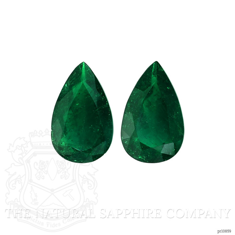 These emeralds, with their pear shape and mix of brilliant cut, showcase dimensions of 17.16 x10.63 x 5.97 mm and 17.12 x 10.43 x 5.44 mm respectively. Their combined weight is a magnificent 9.93 carats, 5.14 carats, and 4.79 carats solo, echoing nature’s artistry while highlighting the enhanced craftsmanship employed. With clarity that includes only the slightest of inklings, their vivacious color captivates any onlooker’s gaze, while the exceptional polish captures light to illuminate their green glow. They have been subject to conventional enhancements that only serve to emphasize their natural magnificence.